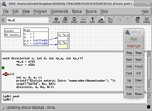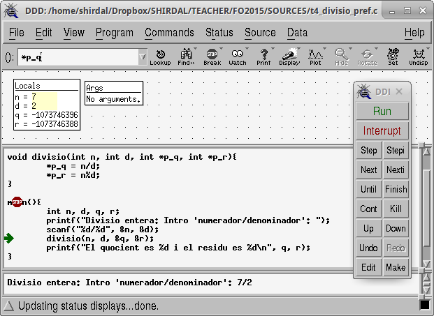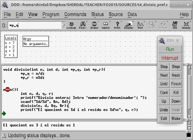 t4_divisio_pref.c Divisió entera que retorna quocient i residu amb pas de variables per referència.